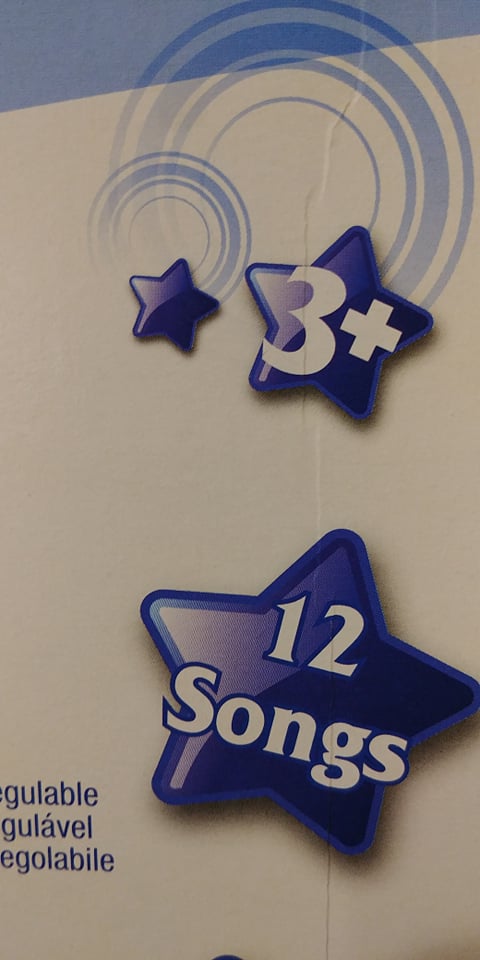 Na opakowaniu pisze także, że urządzenie ma dwanaście piosenek - ale tak naprawdę ma ich znacznie więcej. Wystarczy, że podepnie się swój telefon i się coś puści. Zabawka ma bowiem funkcję podłączenia mp3, telefonu, czy też iPoda. Wystarczy więc kabelkiem połączyć telefon i zabawkę, a dziecko nagle zaczyna mieć dostęp do wielu piosenek. Zaraz zresztą Wam pokażę, jak wygląda ów zestaw - musicie mieć jednak jeszcze trochę cierpliwości. Na zdjęciu wyżej macie natomiast podgląd, jak to według producenta powinno wyglądać - jest to bowiem obrazek wzięty z pudełka.